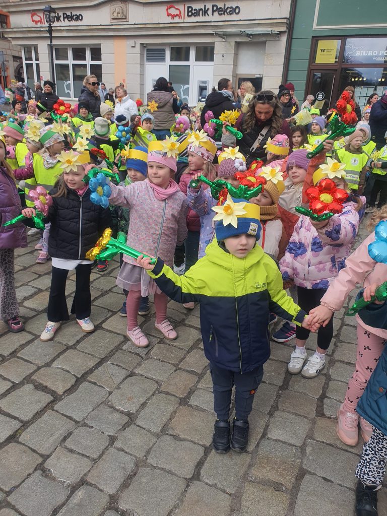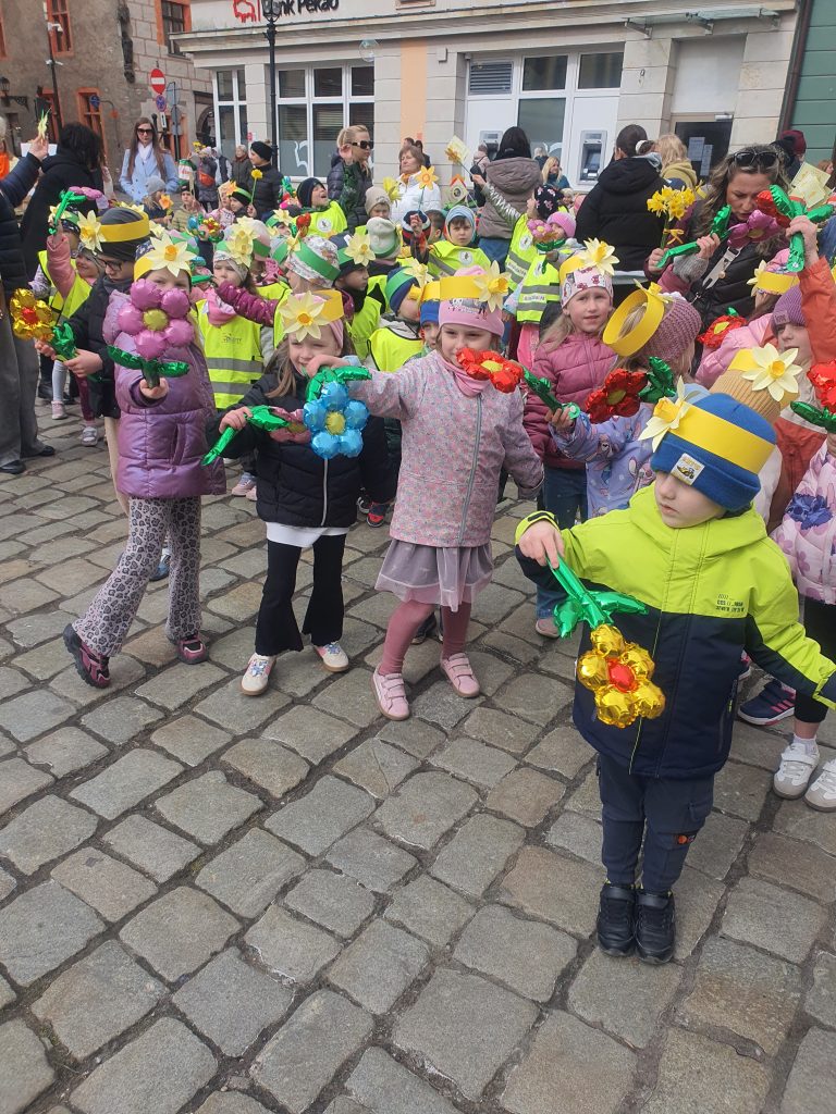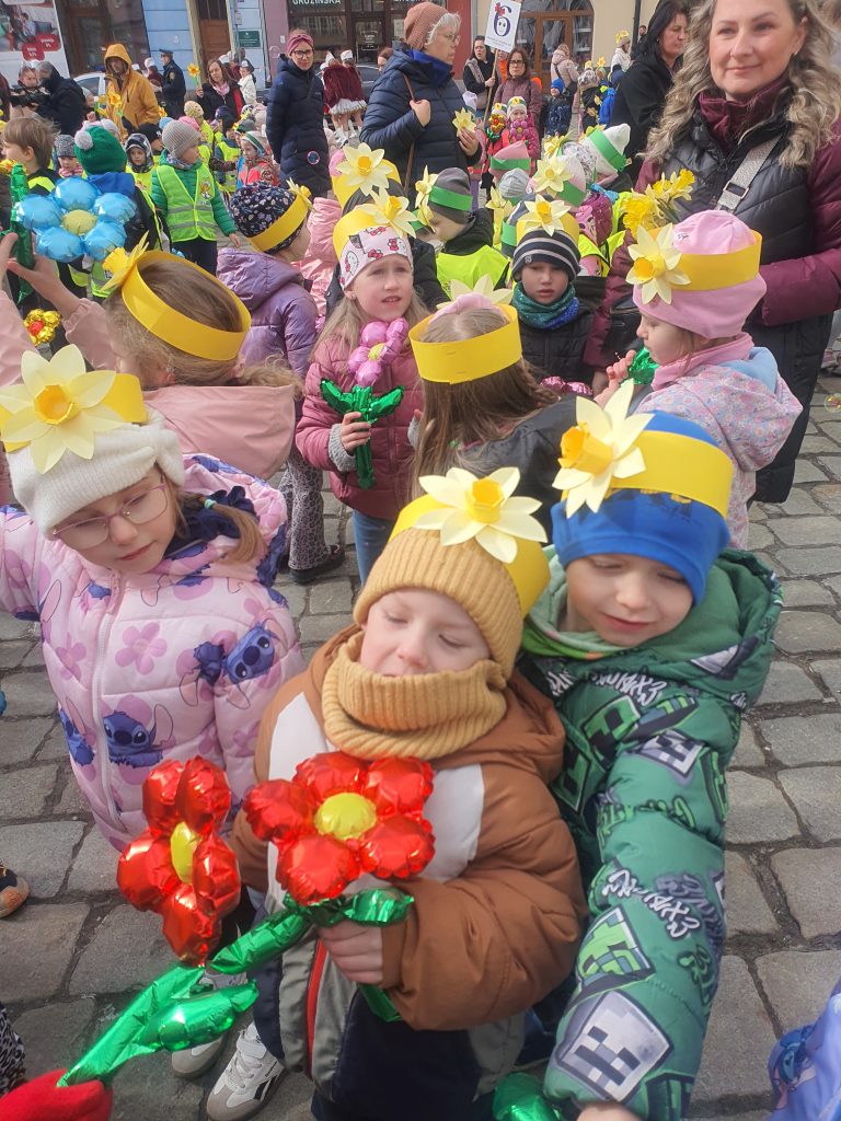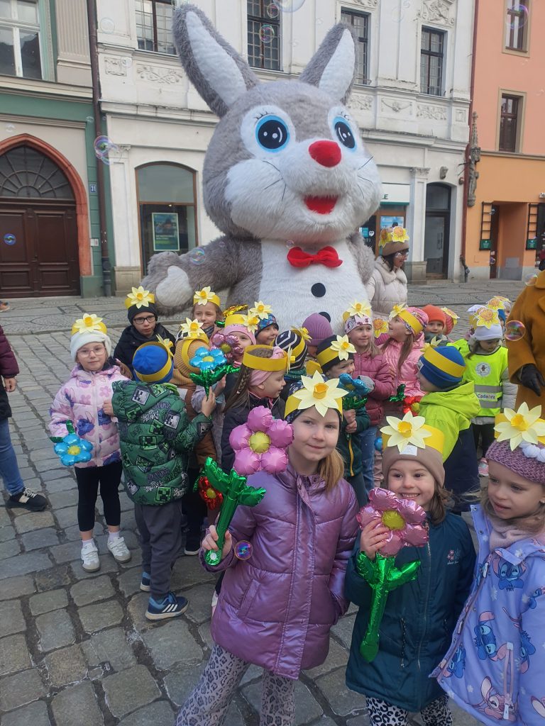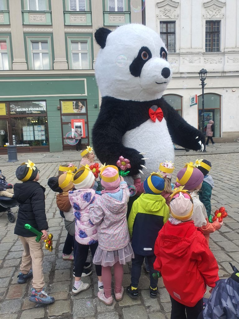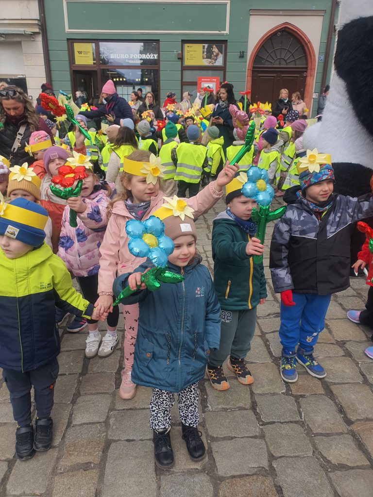 Dziś Tygrysy uczestniczyły w marszu „Pola nadziei” dla świdnickiego hospicjum. Dla ludzi którzy tam przebywają, dla opiekujących się nimi pracowników. Wszyscy mieli żółte żonkile. Do zebranych w rynku dzieci dołączył miś panda i zając oraz komisarz lew. Były bańki mydlane. A na koniec przemarsz wokół świdnickiego rynku.