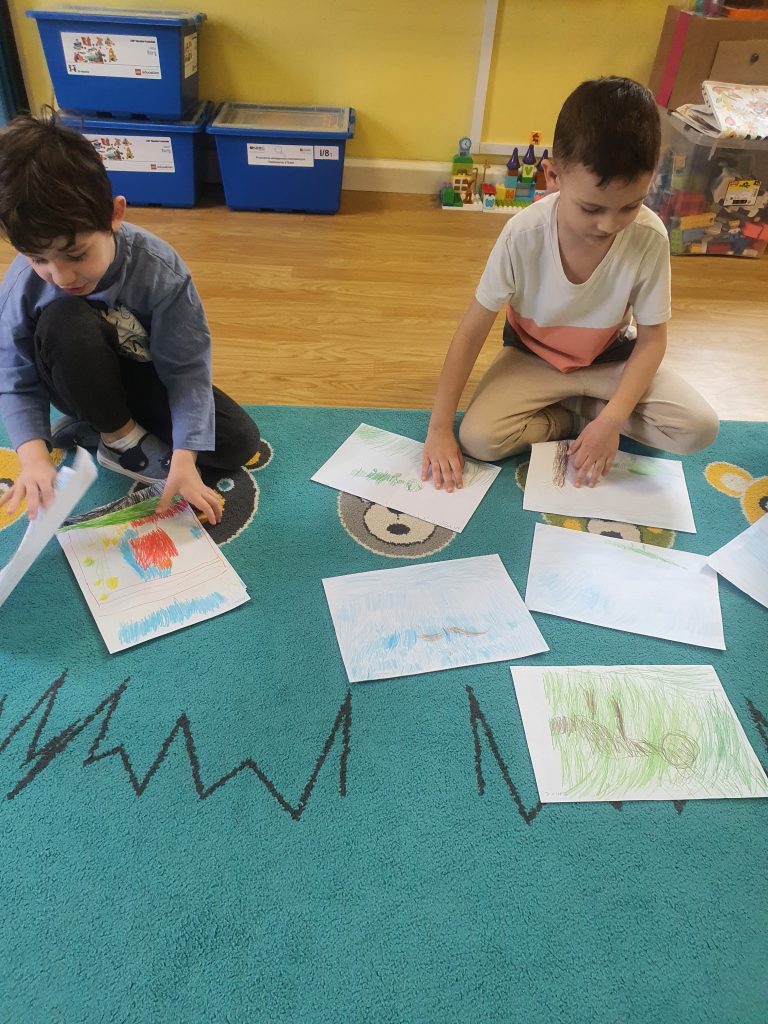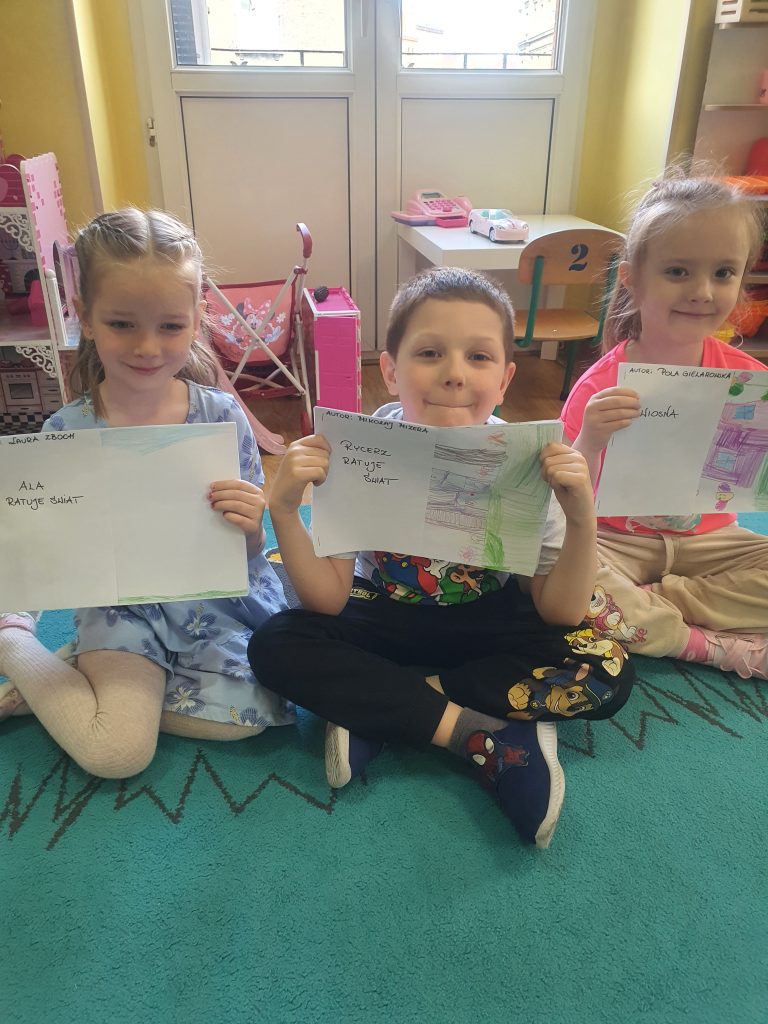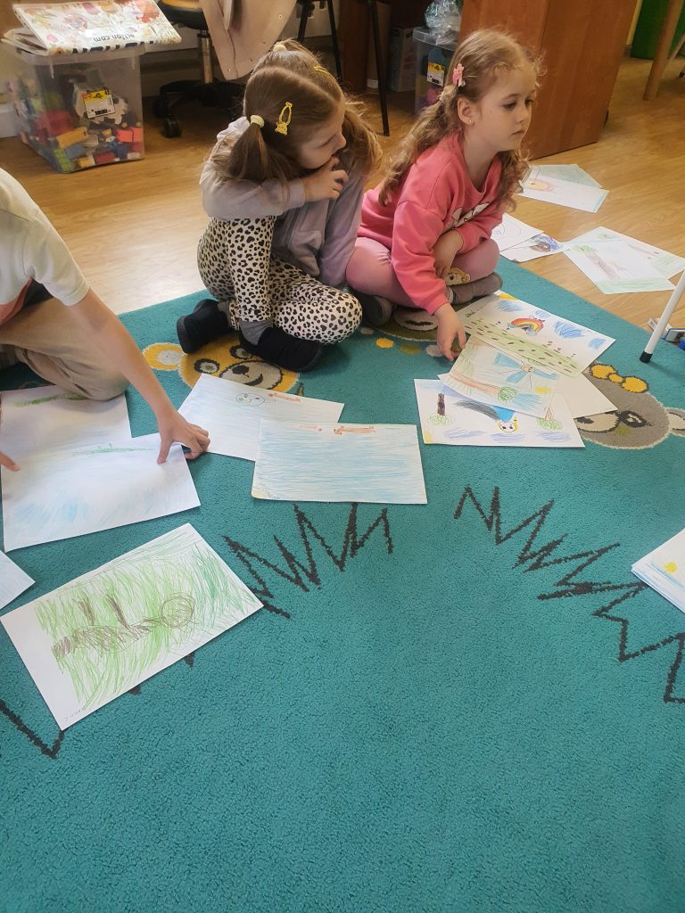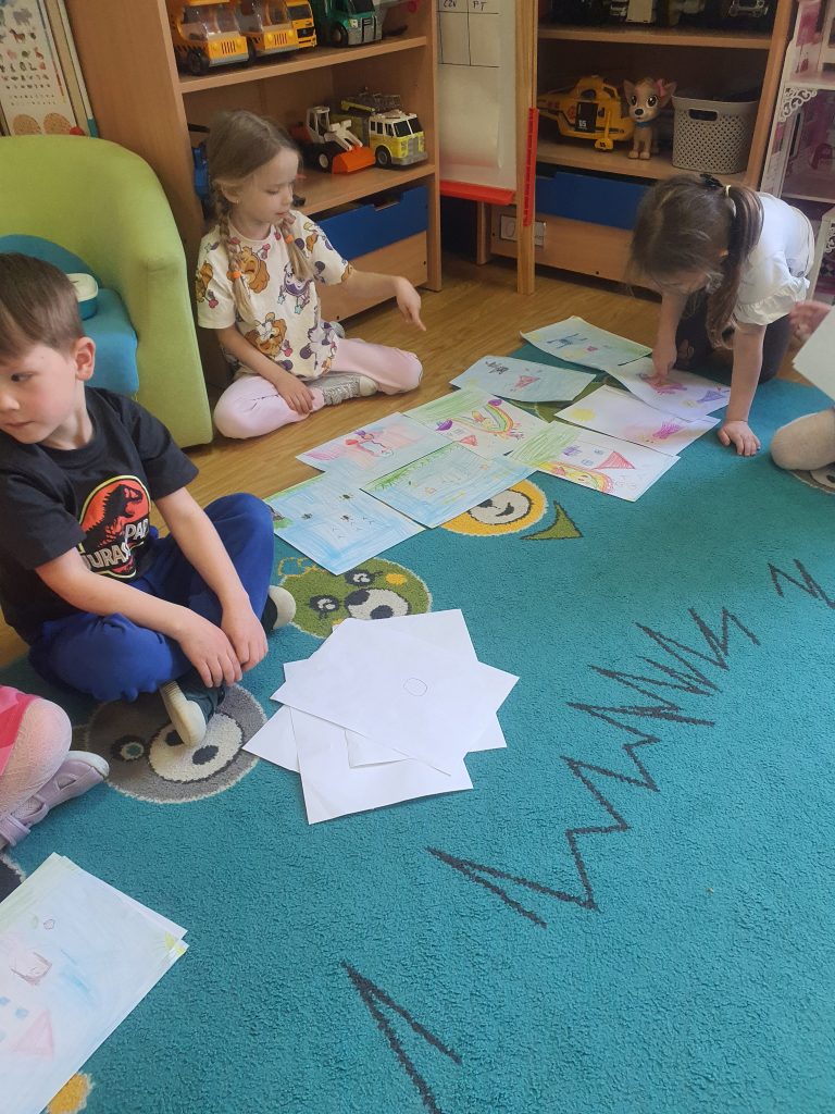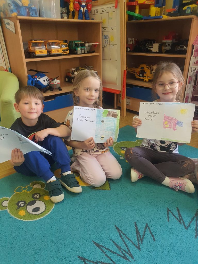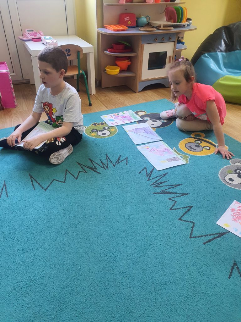W tym tygodniu rozmawialiśmy o książkach a dzieci tworzyły przez cały tydzień swoją autorską książkę. Dzisiaj książki zostały złożone, dzieci mogły je pooglądać i podzielić się swoimi pomysłami z innymi.